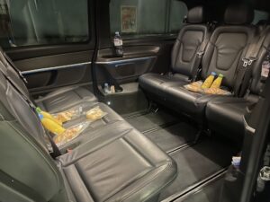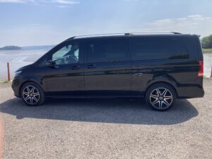 Mercedes V Class – AMG Luxury Line, XLWB (Extra Legroom + Extra Luggage Space), Full Leather, Air-Con, Zoned Climate Control, Privacy Glass, Elevated Viewing/Large Passenger Windows, Wi-Fi, Remotely Operated Electric Doors, Adjustable Passenger Seating (Face to Face or Face Forward) & Media Interface Connectors.